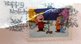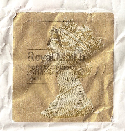 The stamp from our winning package sent from